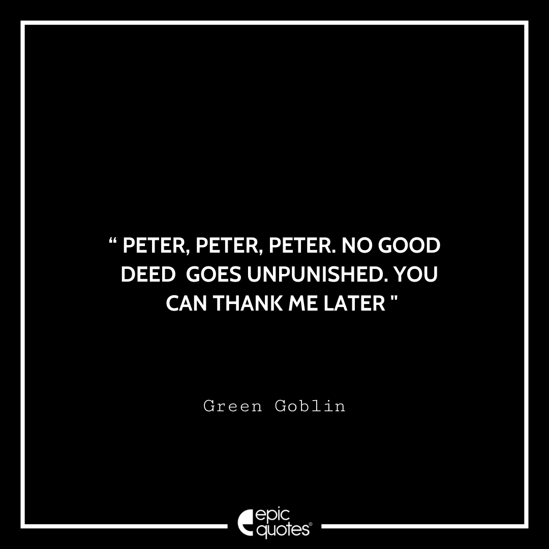 27. Peter, Peter, Peter. No good deed goes unpunished. You can thank me later. –Green Goblin