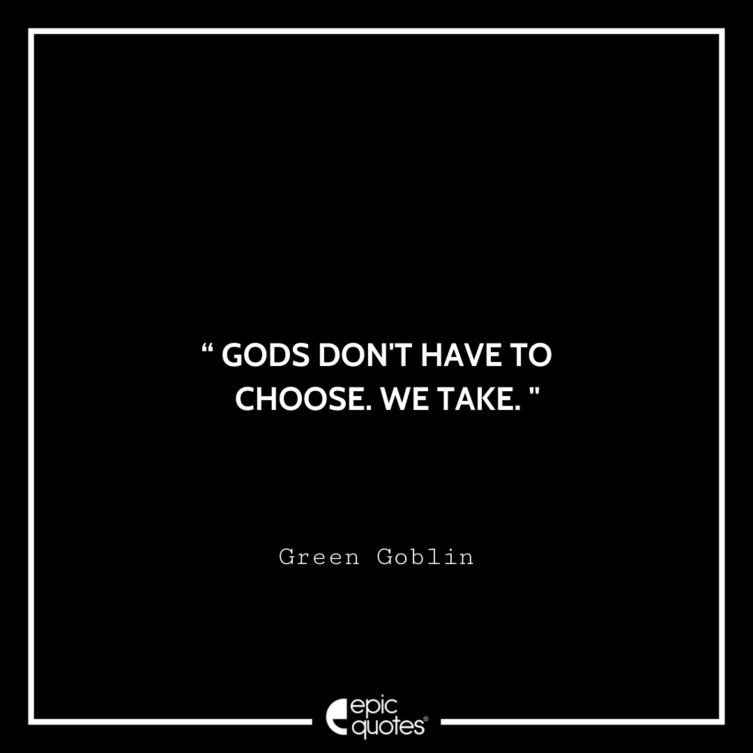 The Goblin had no sense of morality and rejected the notion of being cured. He says this quote in order to lure the other villains to his side, saying that their abilities made them gods and not bad guys.