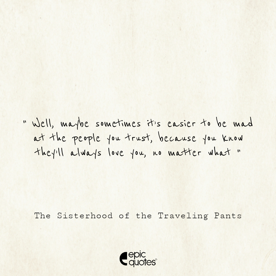 8 Well, maybe sometimes it’s easier to be mad at the people you trust. Because you know they’ll always love you, no matter what