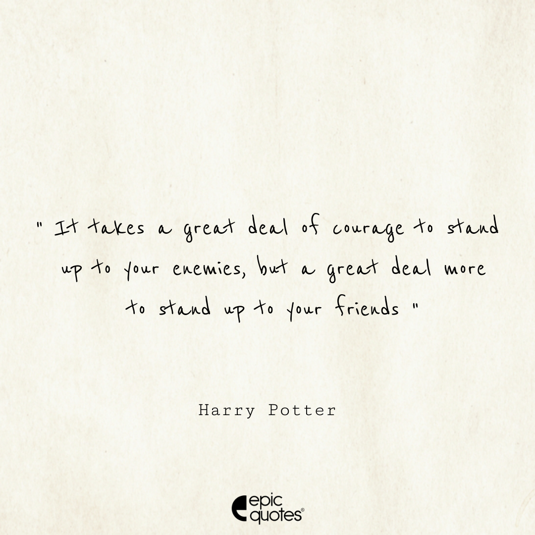 44 It takes a great deal of courage to stand up to your enemies, but a great deal more to stand up to your friends. – Harry Potter