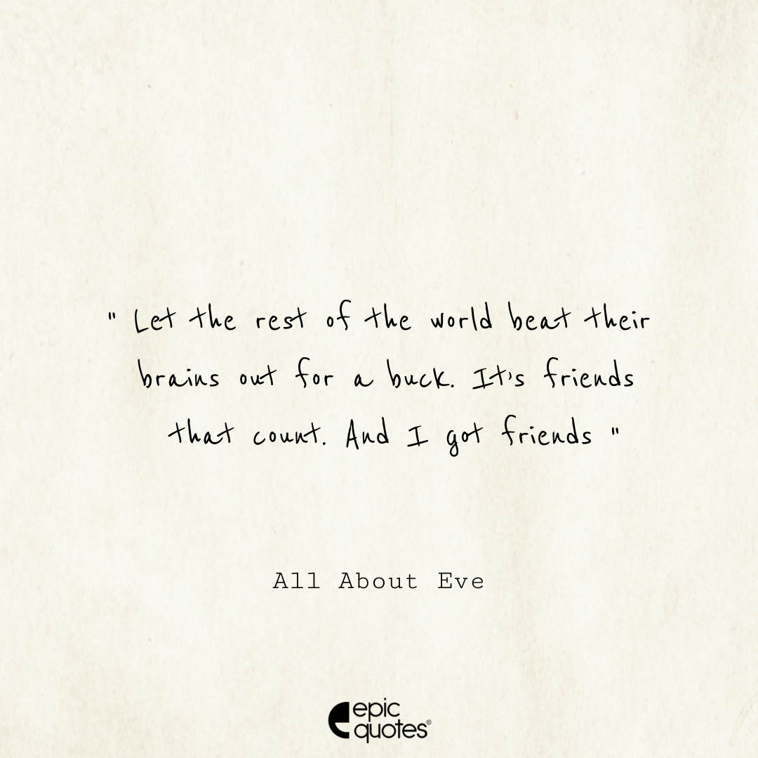 45 Let the rest of the world beat their brains out for a buck. It’s friends that count. And I got friends. – All About Eve
