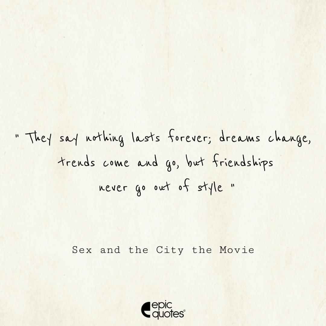 49. They say nothing lasts forever; dreams change, trends come and go, but friendships never go out of style. – Sex and the City the Movie
