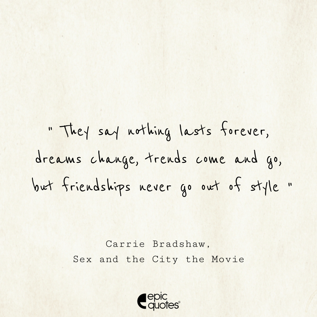 17 They say nothing lasts forever; dreams change, trends come and go, but friendships never go out of style. -Carrie Bradshaw, Sex and the City the Movie