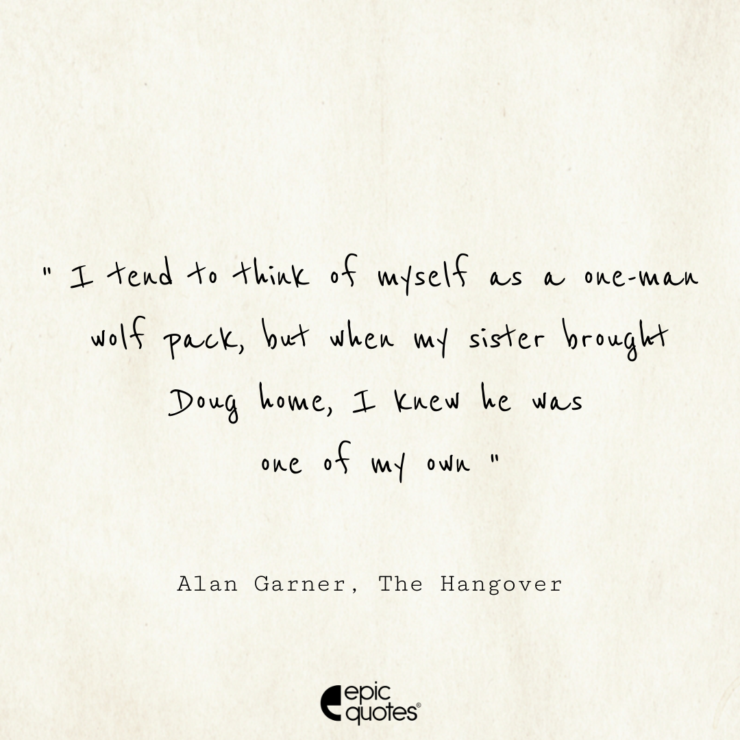 18. I tend to think of myself as a one-man wolf pack, But when my sister brought Doug home, I knew he was one of my own. -Alan Garner, The Hangover