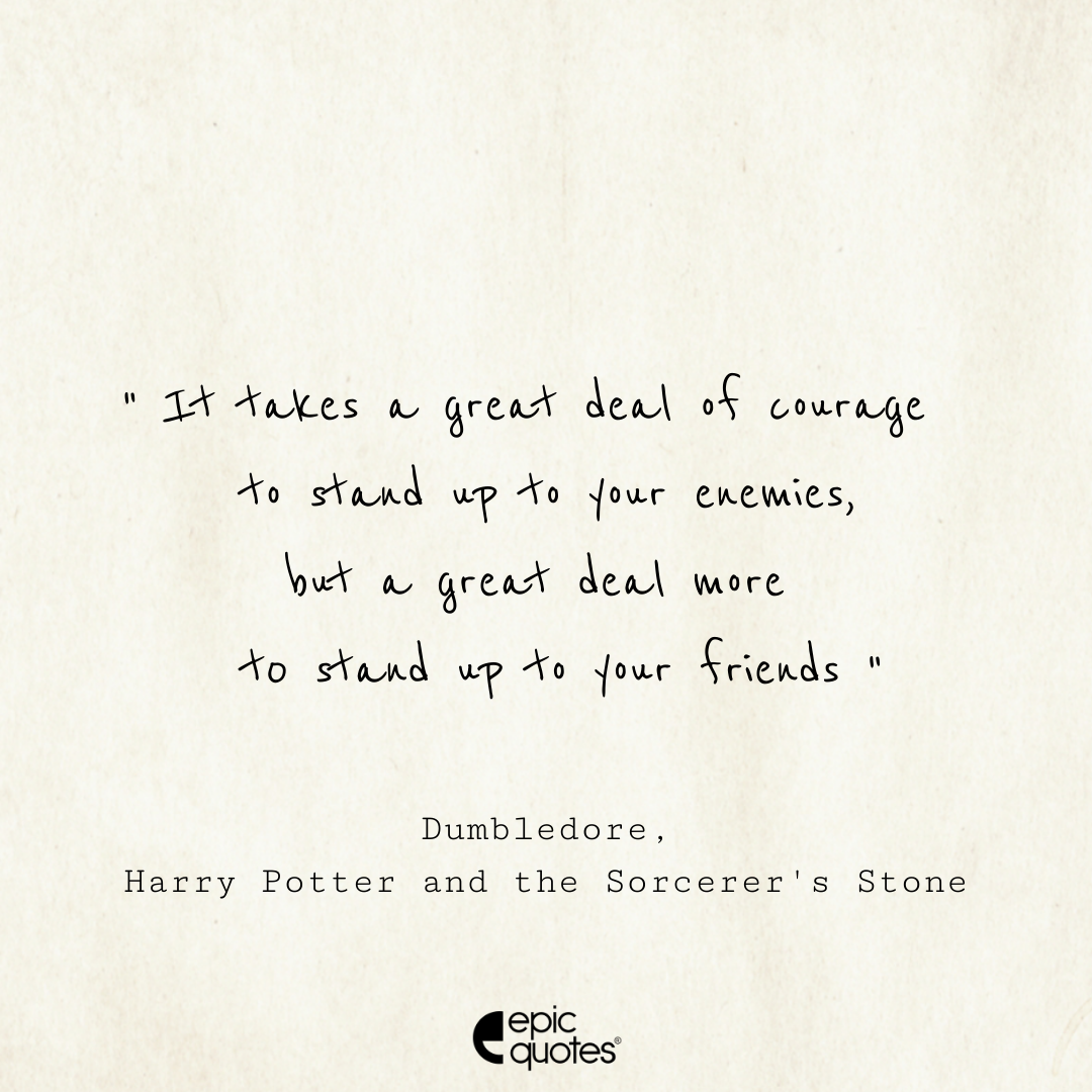 25. It takes a great deal of courage to stand up to your enemies, but a great deal more to stand up to your friends. -Dumbledore, Harry Potter and the Sorcerer’s Stone