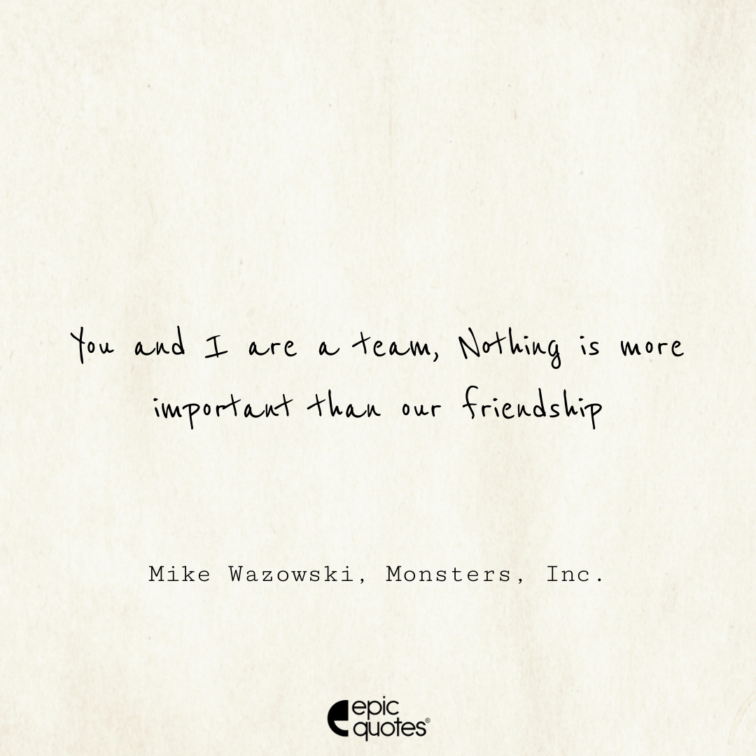 28. You and I are a team, Nothing is more important than our friendship. -Mike Wazowski, Monsters, Inc.
