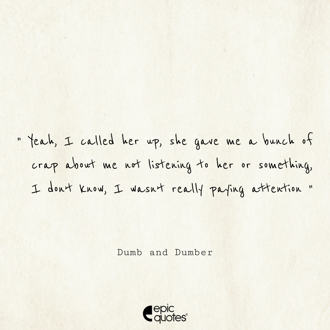 30 Yeah, I called her up, she gave me a bunch of crap about me not listening to her or something, I don’t know, I wasn’t really paying attention. – Dumb and Dumber
