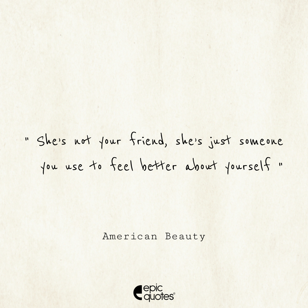 36. She’s not your friend, she’s just someone you use to feel better about yourself. – American Beauty