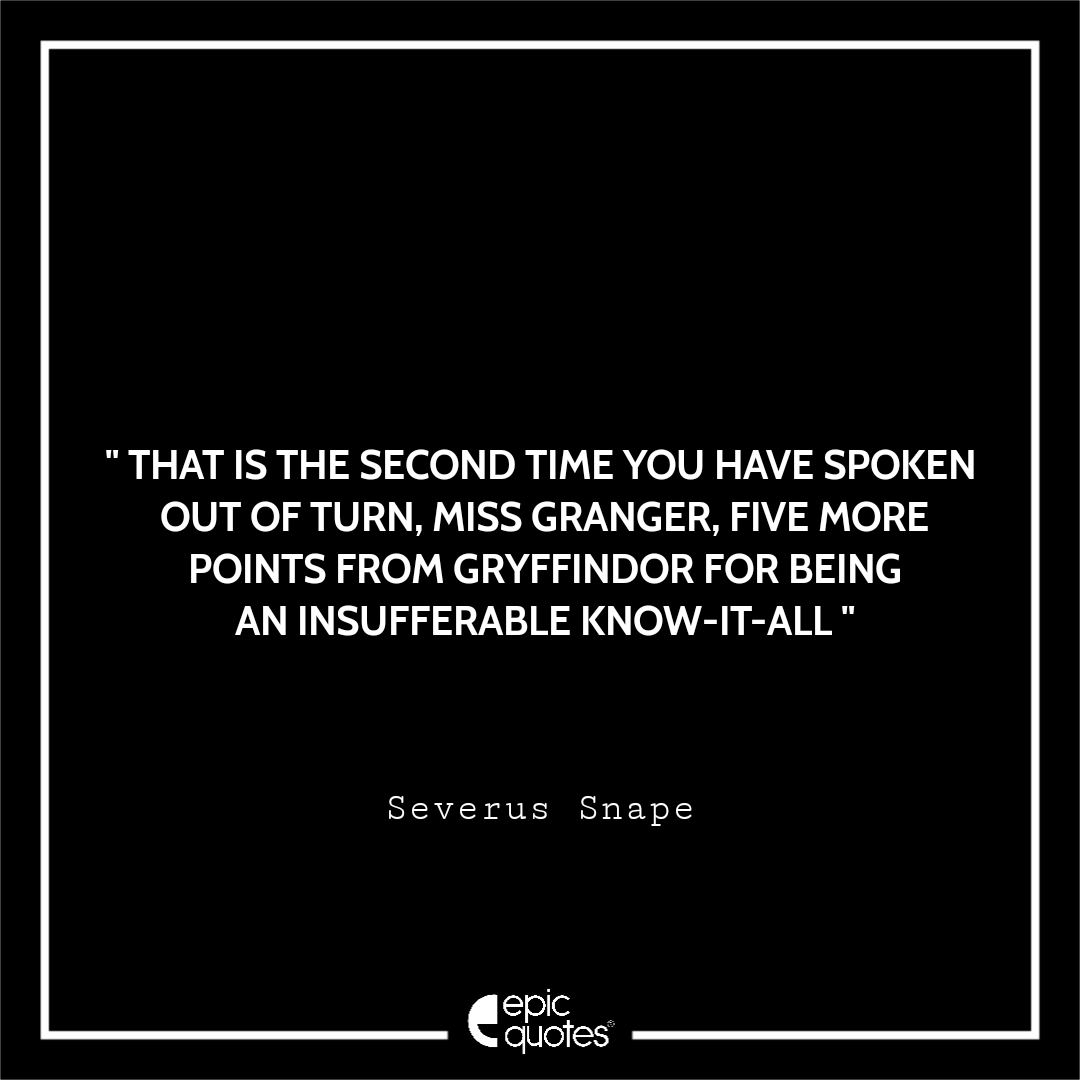 12 That is the second time you have spoken out of turn, Miss Granger . . . Five more points from Gryffindor for being an insufferable know-it-all