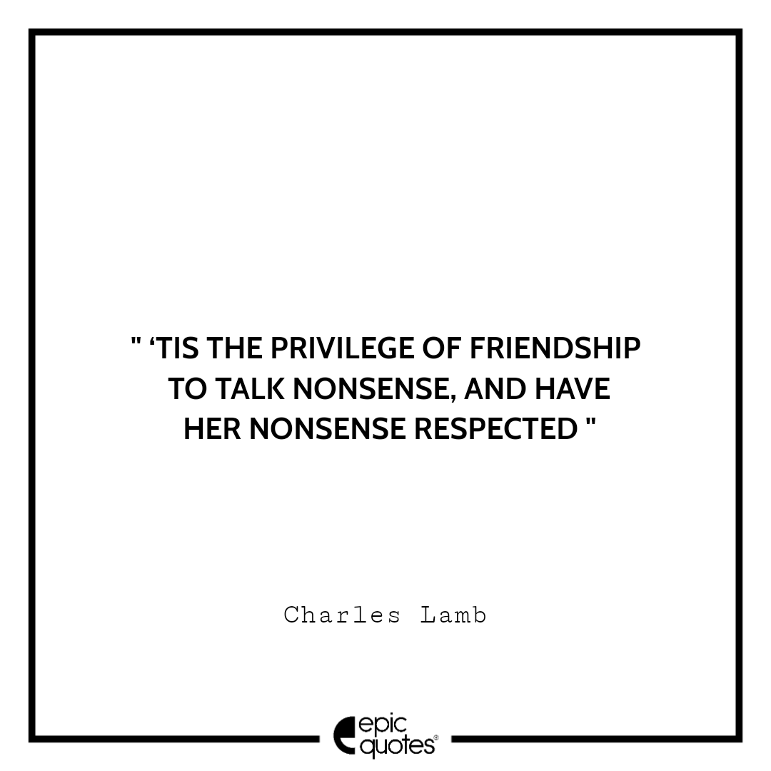 4. ‘Tis the privilege of friendship to talk nonsense, and have her nonsense respected. – Charles Lamb