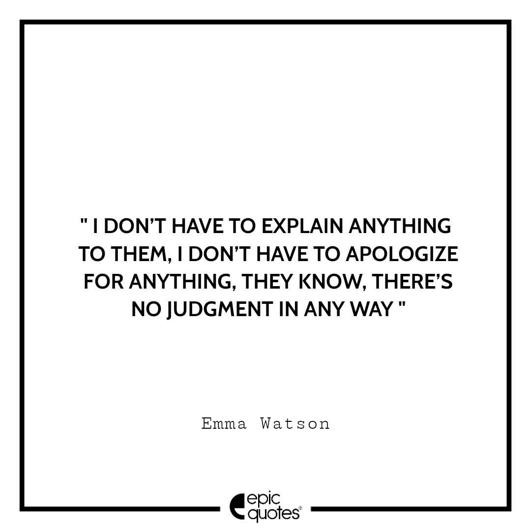 9 I don’t have to explain anything to them. I don’t have to apologize for anything. They know. There’s no judgment in any way.” – Emma Watson