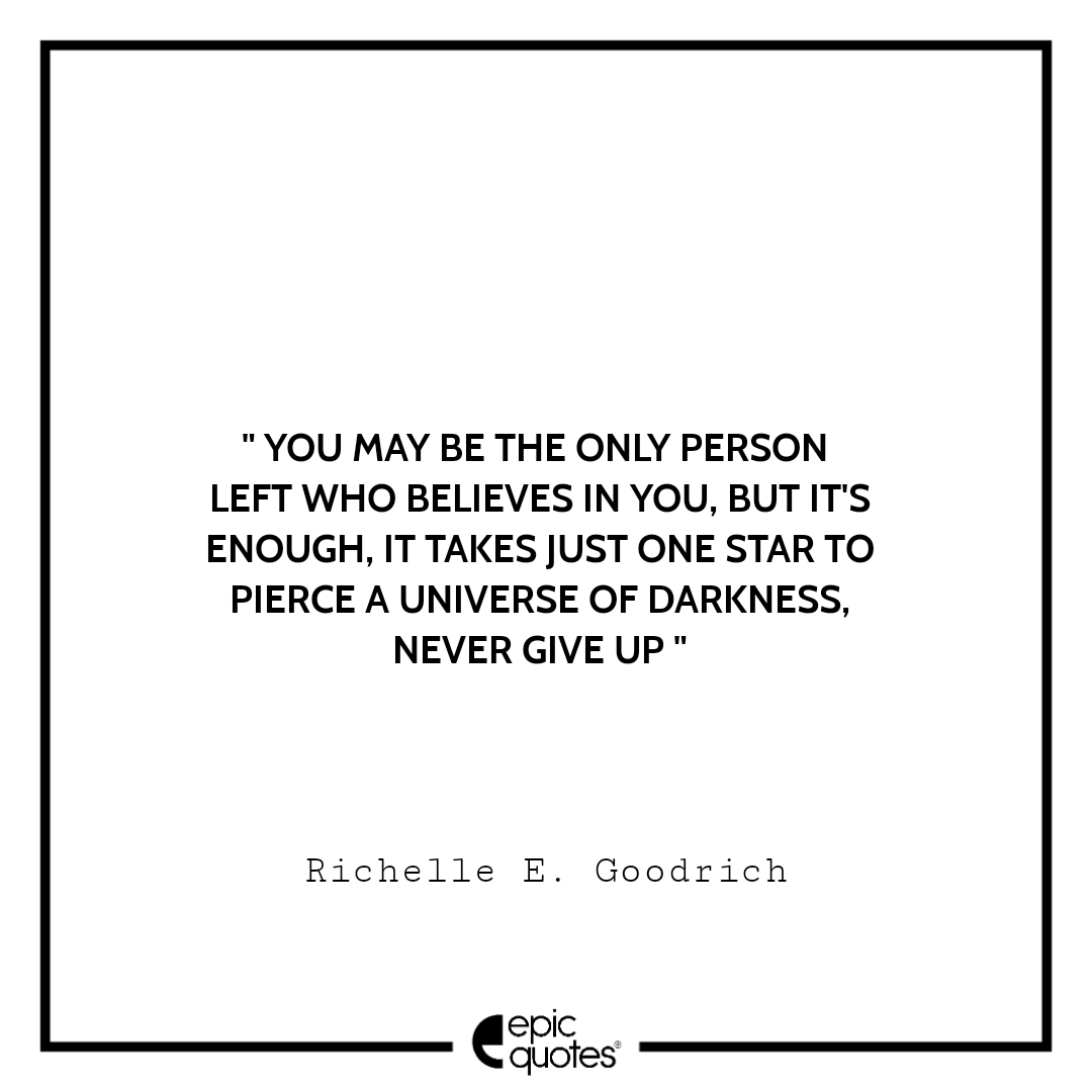 3 You may be the only person left who believes in you, but it’s enough. It takes just one star to pierce a universe of darkness. Never give up. -Richelle E. Goodrich