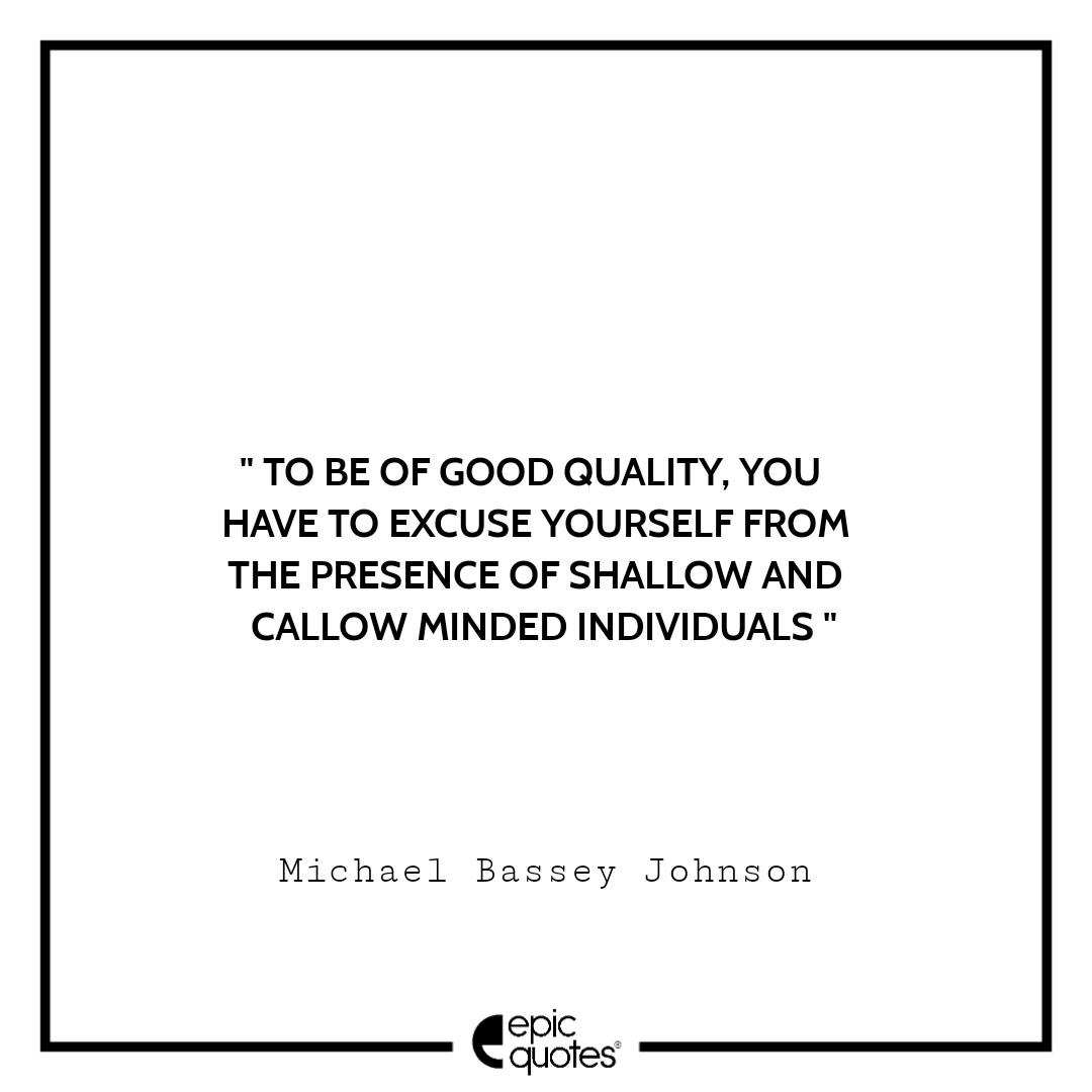 6 To be of good quality, you have to excuse yourself from the presence of shallow and callow minded individuals. -Michael Bassey Johnson