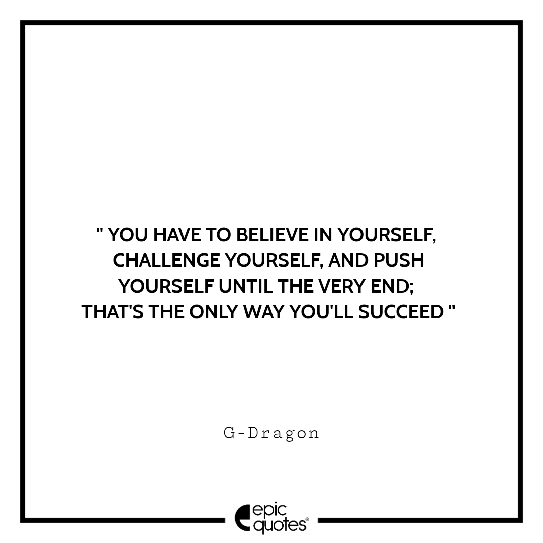 15 You have to believe in yourself, challenge yourself, and push yourself until the very end; that’s the only way you’ll succeed. -G-Dragon