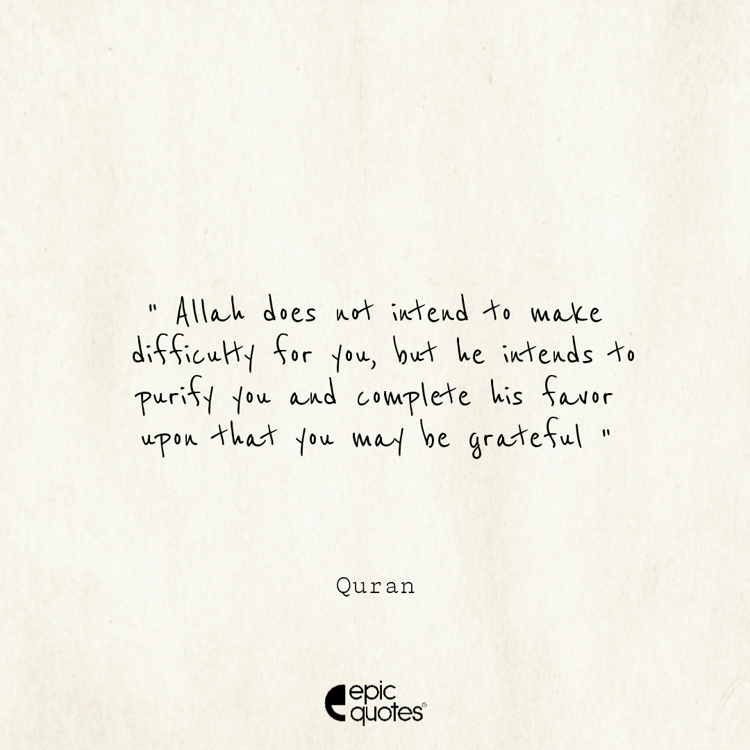5. Allah (God) does not intend to make difficulty for you, but He intends to purify you and complete His favor upon that you may be grateful