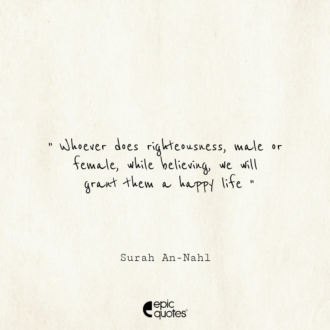 13. Whoever does righteousness, male or female, while believing, we will grant them a happy life
