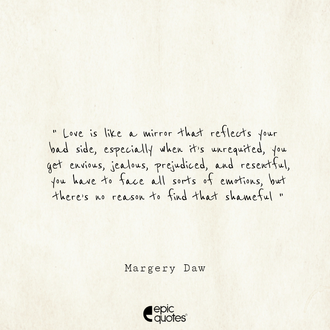 2 Love is like a mirror that reflects your bad side. Especially when it’s unrequited, you get envious, jealous, prejudiced, and resentful. You have to face all sorts of emotions, but there’s no reason to find that shameful
