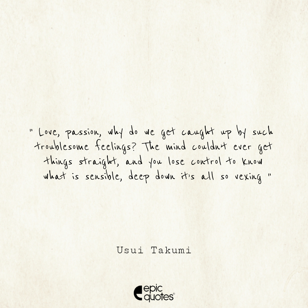 3 Love, passion, why do we get caught up by such troublesome feelings? The mind couldn’t ever get things straight, and you lose control to know what is sensible. Deep down it’s all so vexing