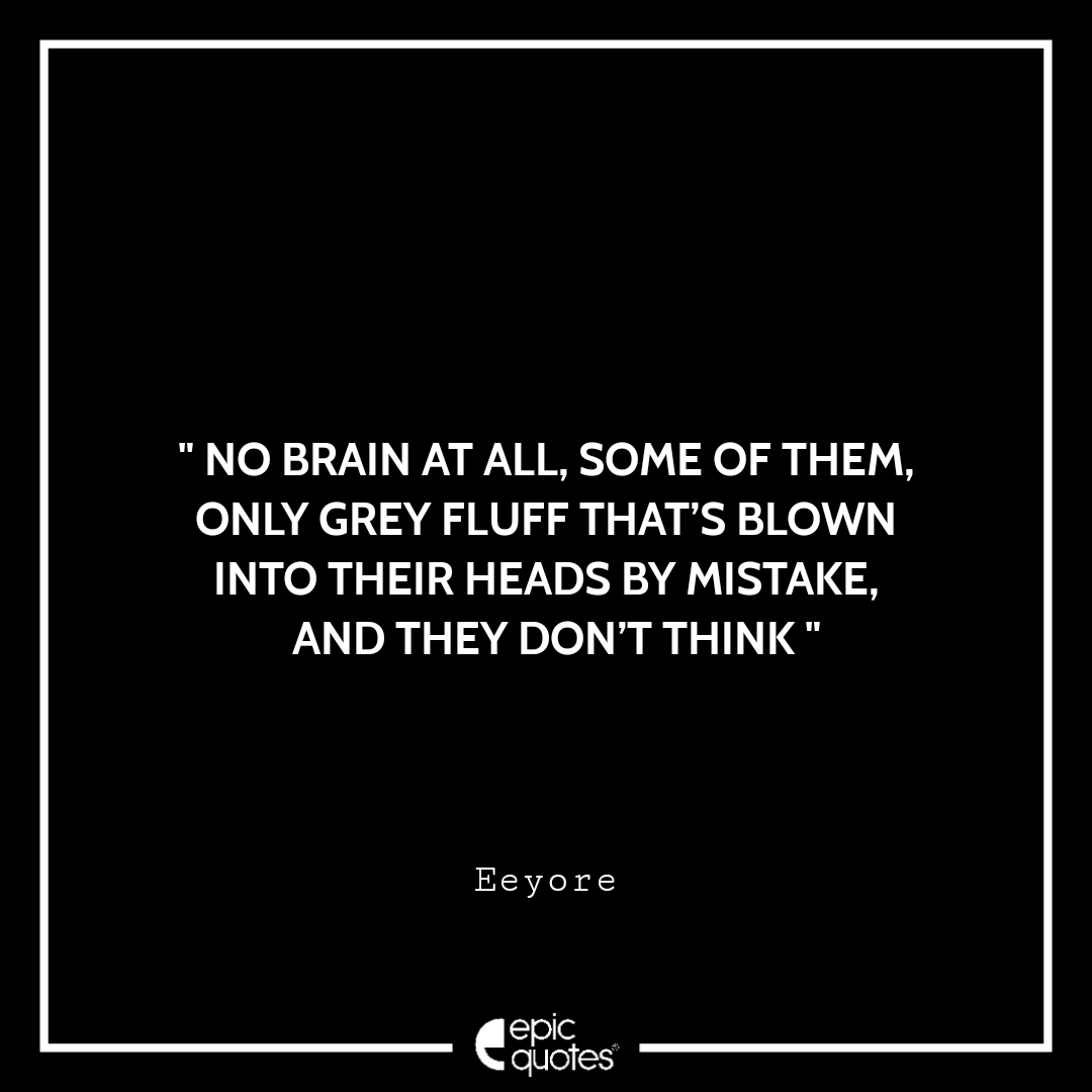8 No brain at all, some of them, only grey fluff that’s blown into their heads by mistake, and they don’t think.– Eeyore