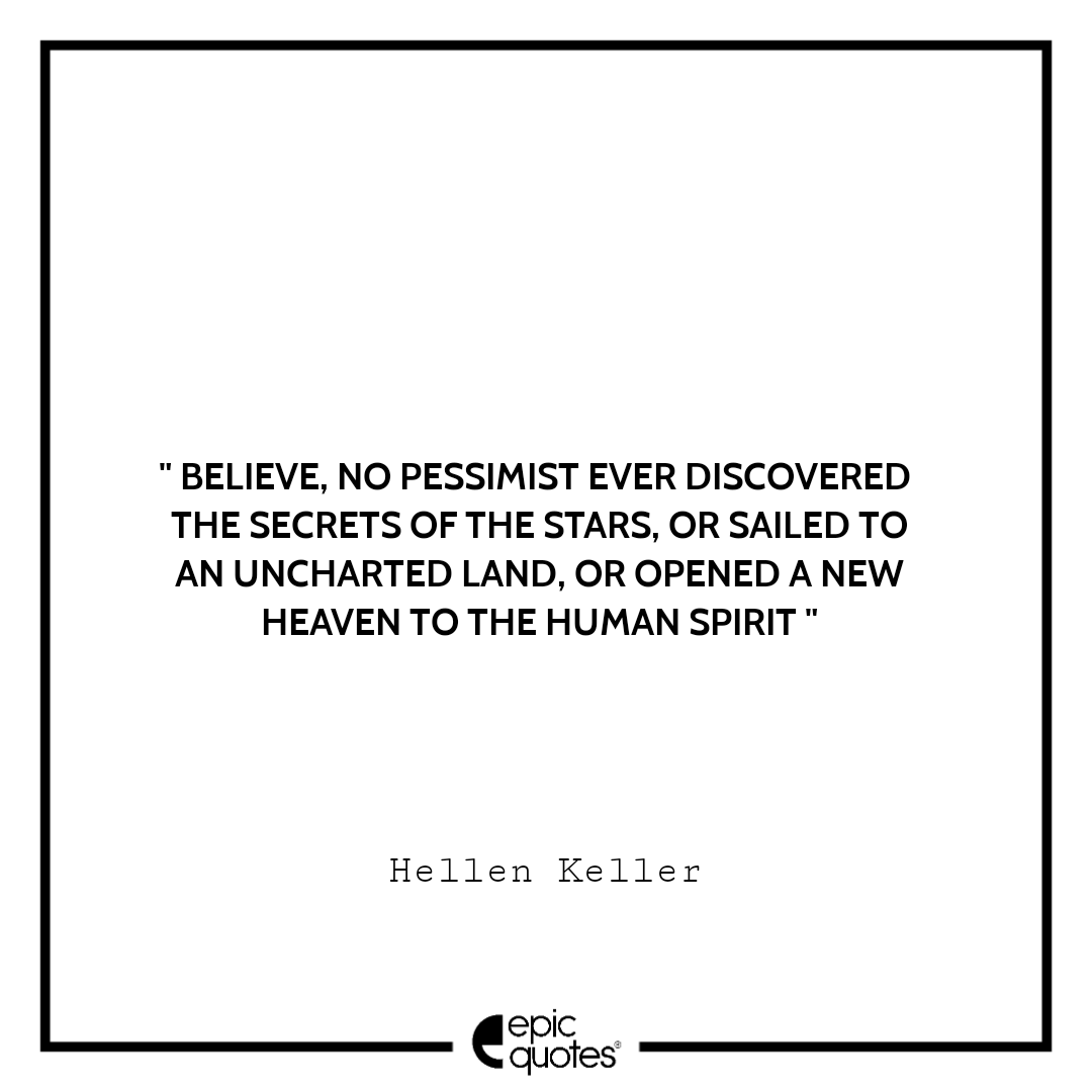 3 Believe. No pessimist ever discovered the secrets of the stars, or sailed to an uncharted land, or opened a new heaven to the human spirit. – Hellen Keller