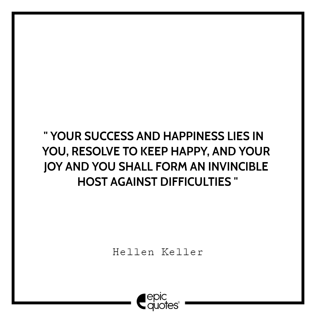 4 Your success and happiness lies in you. Resolve to keep happy, and your joy and you shall form an invincible host against difficulties. – Hellen Keller
