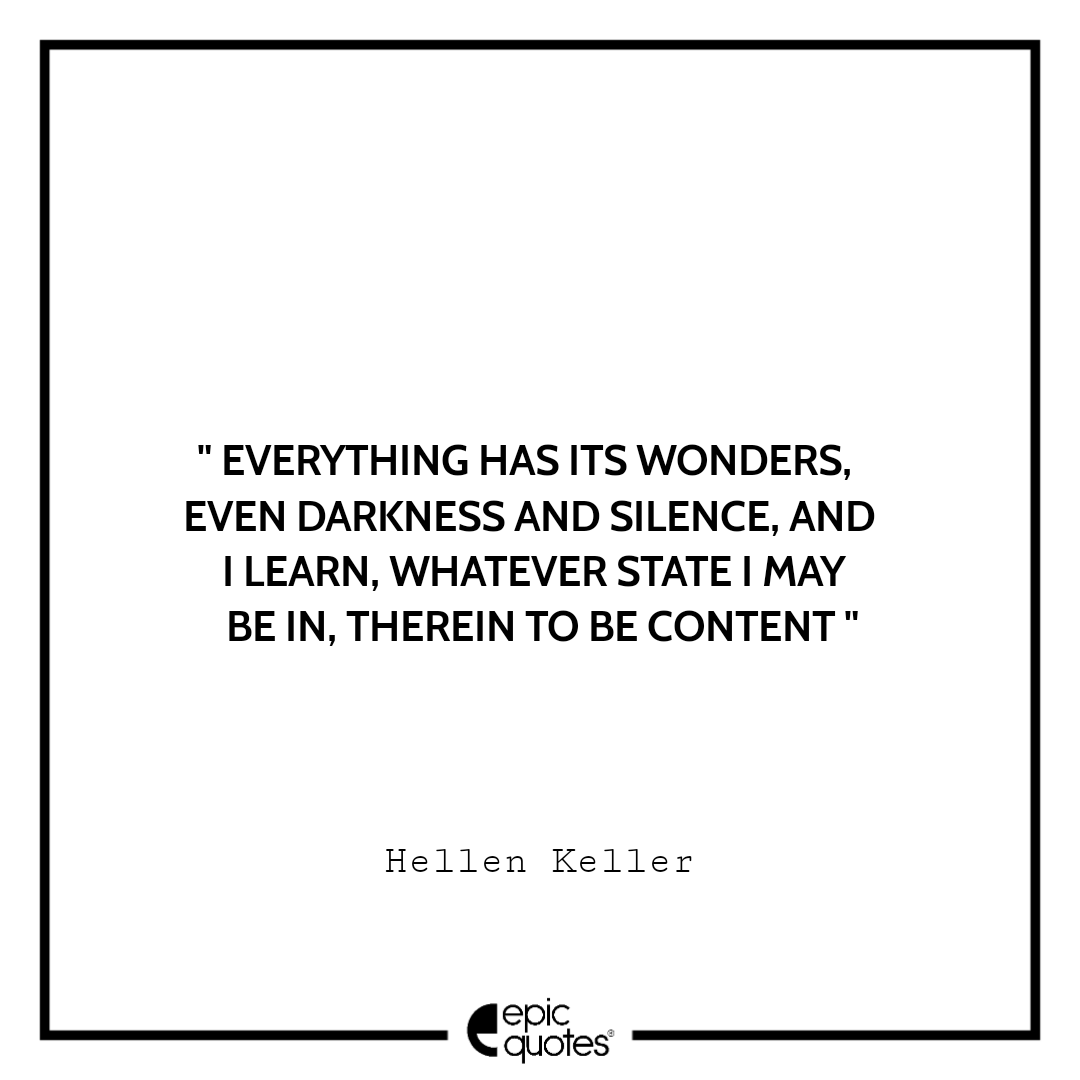12. Everything has its wonders, even darkness and silence, and I learn, whatever state I may be in, therein to be content. – Hellen Keller