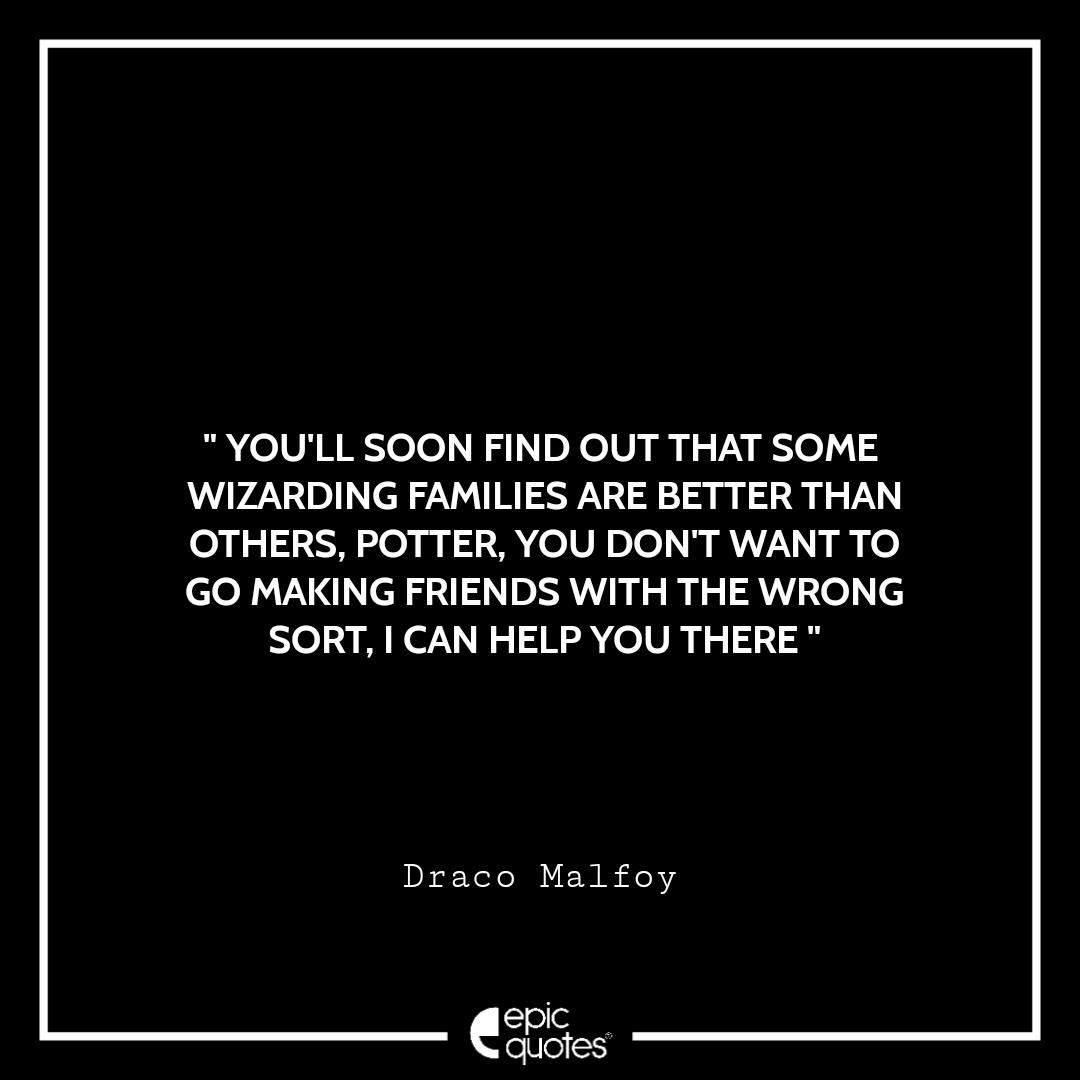 1 You’ll soon find out that some wizarding families are better than others, Potter. You don’t want to go making friends with the wrong sort. I can help you there. – Draco Malfoy