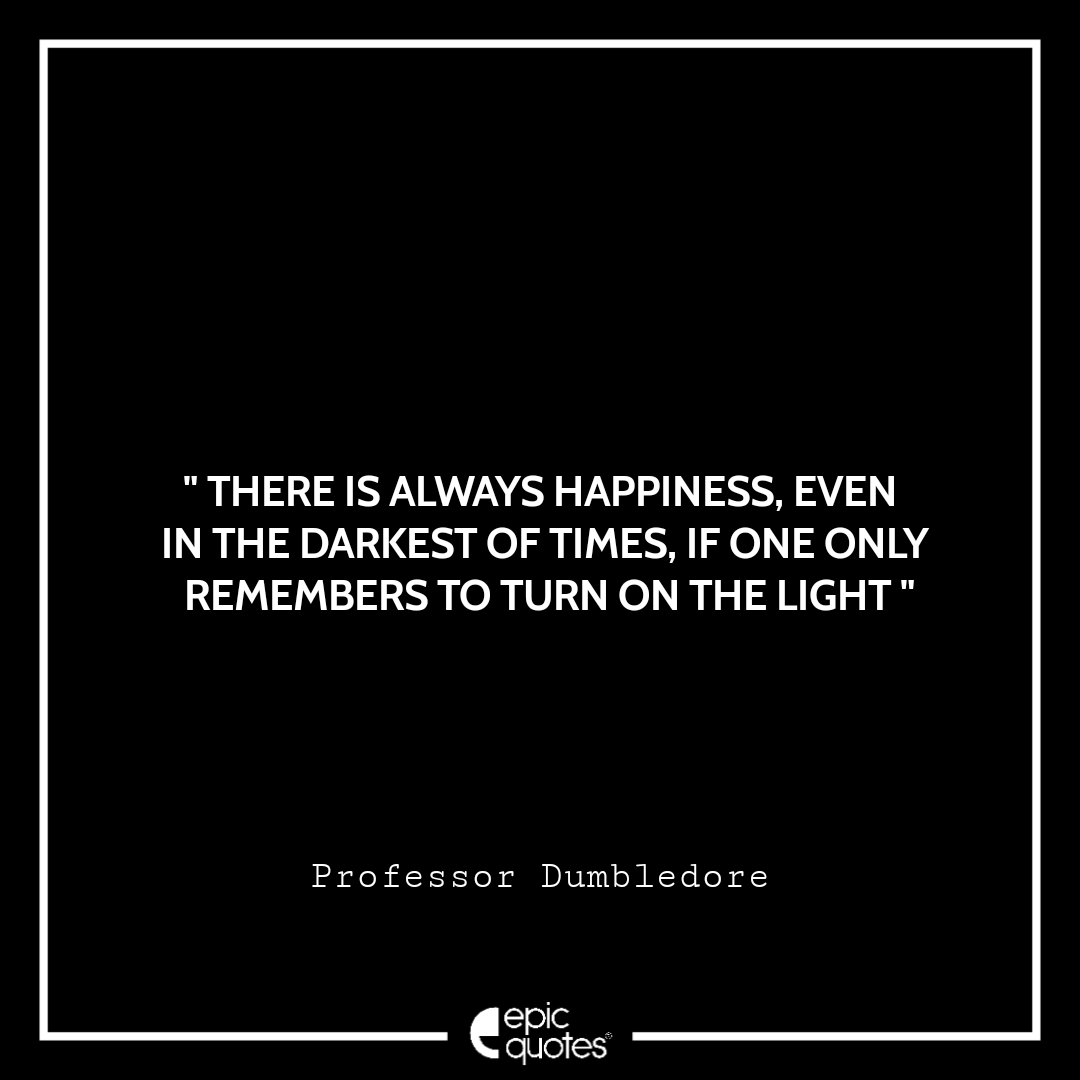 6 There is always happiness, even in the darkest of times, if one only remembers to turn on the light. –Albus Dumbledore