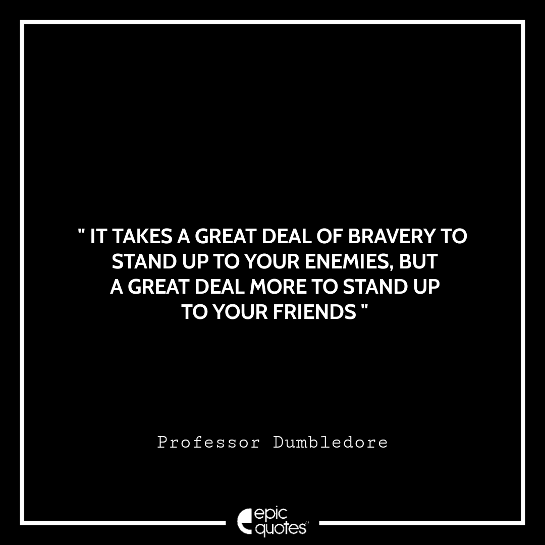 7 It takes a great deal of bravery to stand up to your enemies, but a great deal more to stand up to your friends. – Albus Dumbledore
