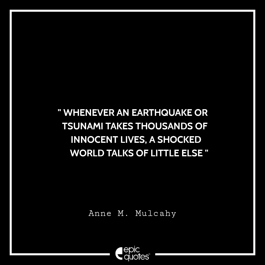 1. Whenever an earthquake or tsunami takes thousands of innocent lives, a shocked world talks of little else. -Anne M. Mulcahy