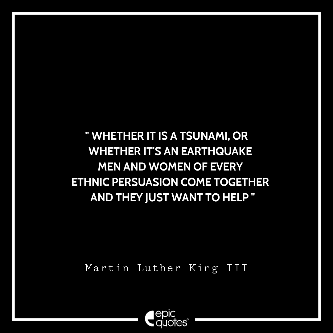2. Whether it is a tsunami, or whether it’s an earthquake – men and women of every ethnic persuasion come together and they just want to help. -Martin Luther King III