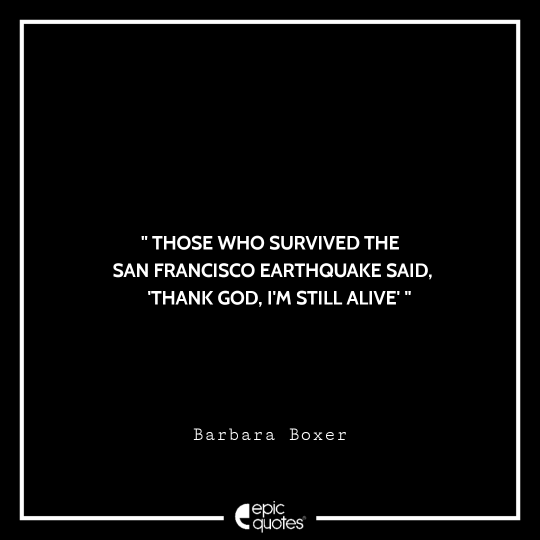 3. Those who survived the San Francisco earthquake said, ‘Thank God, I’m still alive.’ -Barbara Boxer