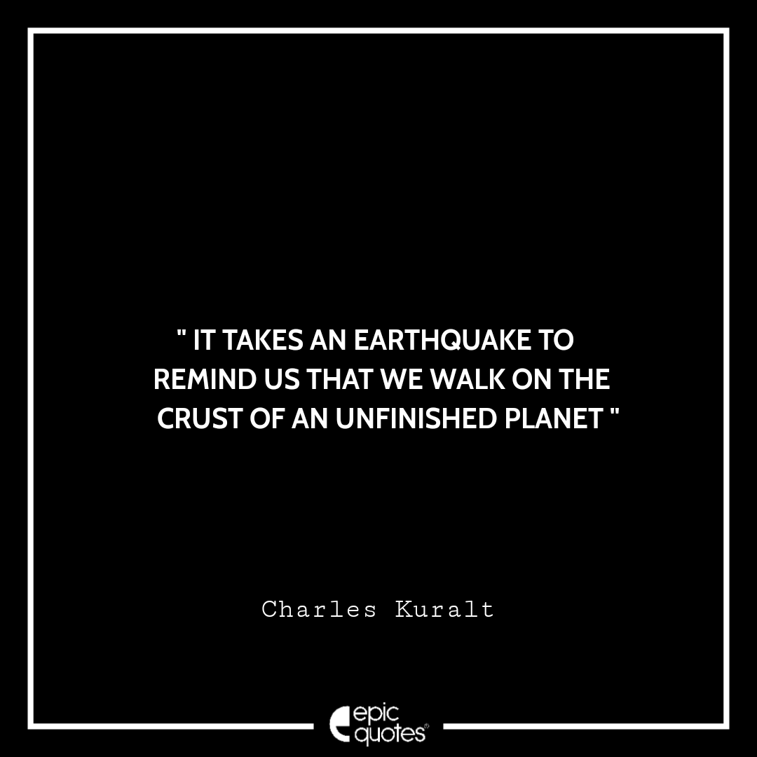 8. It takes an earthquake to remind us that we walk on the crust of an unfinished planet. -Charles Kuralt