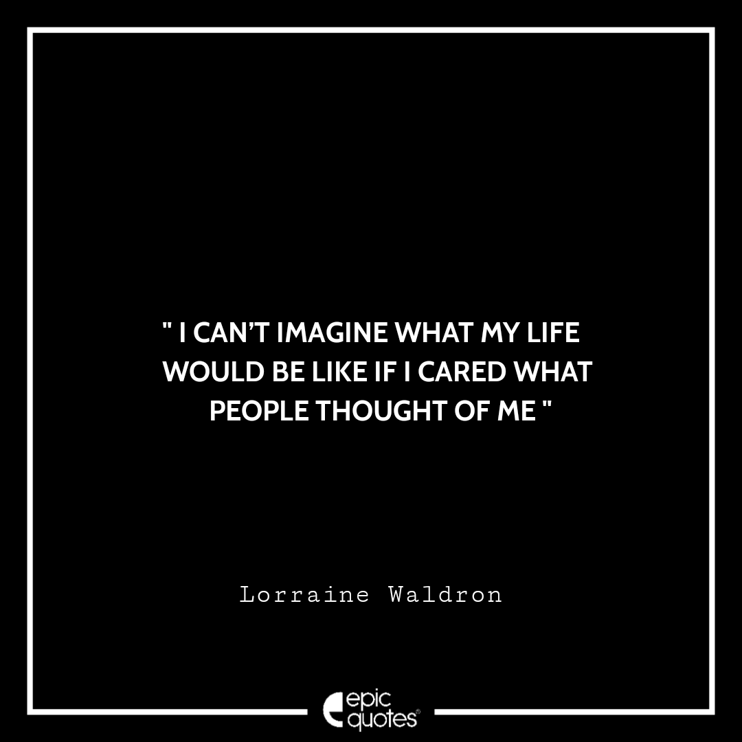 3 I can’t imagine what my life would be like if I cared what people thought of me. -Lorraine Waldron