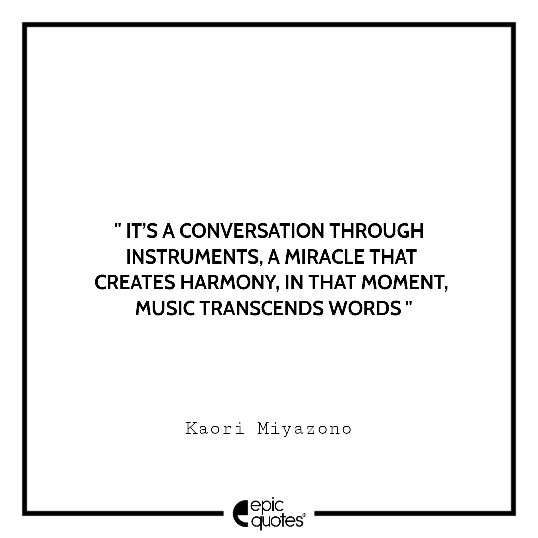 7 . It’s a conversation through instruments, a miracle that creates harmony, in that moment, music transcends words. –Kaori Miyazono