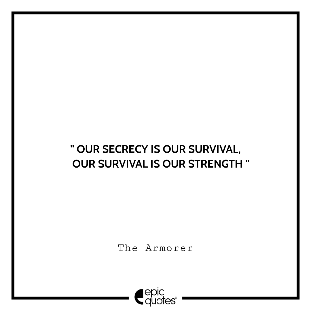 1. Our secrecy is our survival, our survival is our strength. -The Armorer