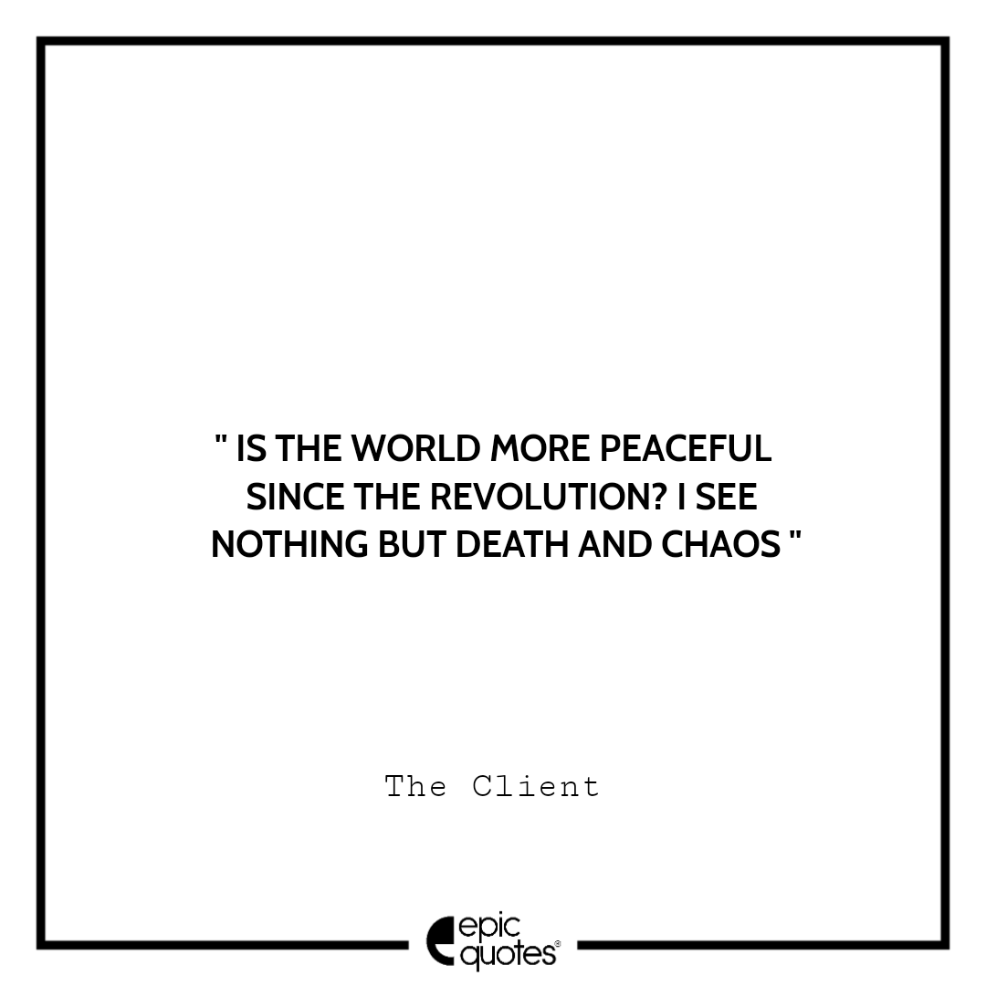 11 Is the world more peaceful since the revolution? I see nothing but death and chaos. -The Client