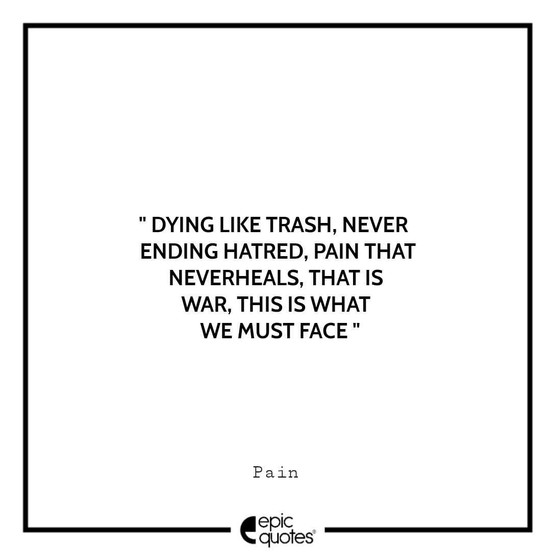 1. Dying like trash, Never ending hatred, Pain that never heals, That is war, This is what we must face. -Pain