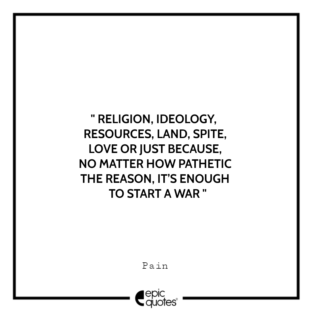 3. Religion, ideology, resources, land, spite, love or just because, No matter how pathetic the reason, it’s enough to start a war. -Pain