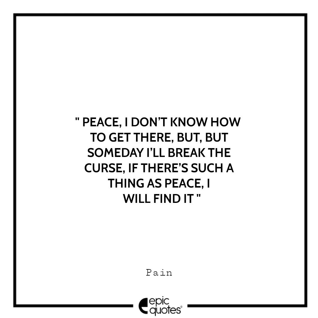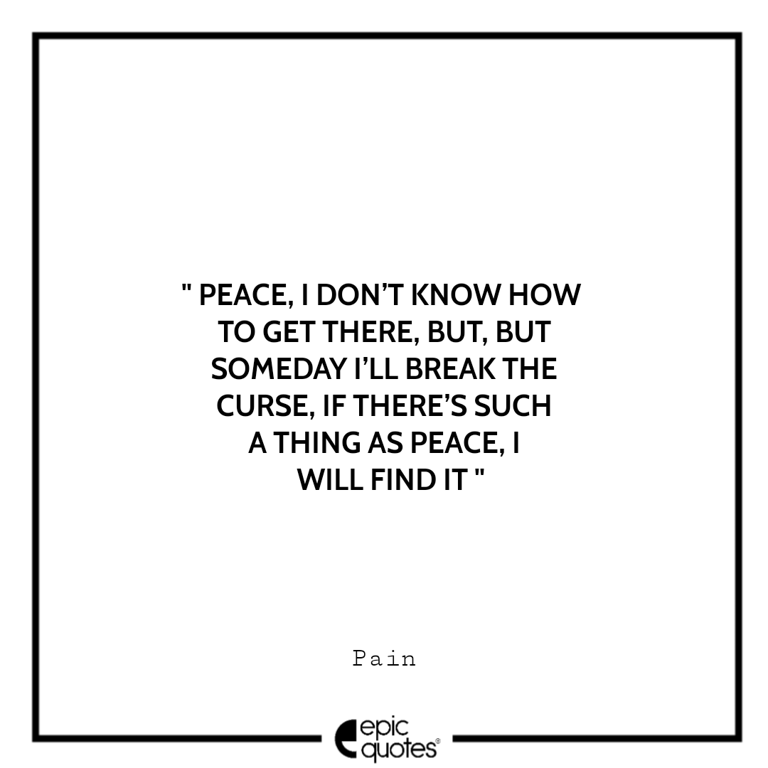 19. Peace, I don’t know how to get there, But, but someday I’ll break the curse, If there’s such a thing as peace, I will find it. -Pain