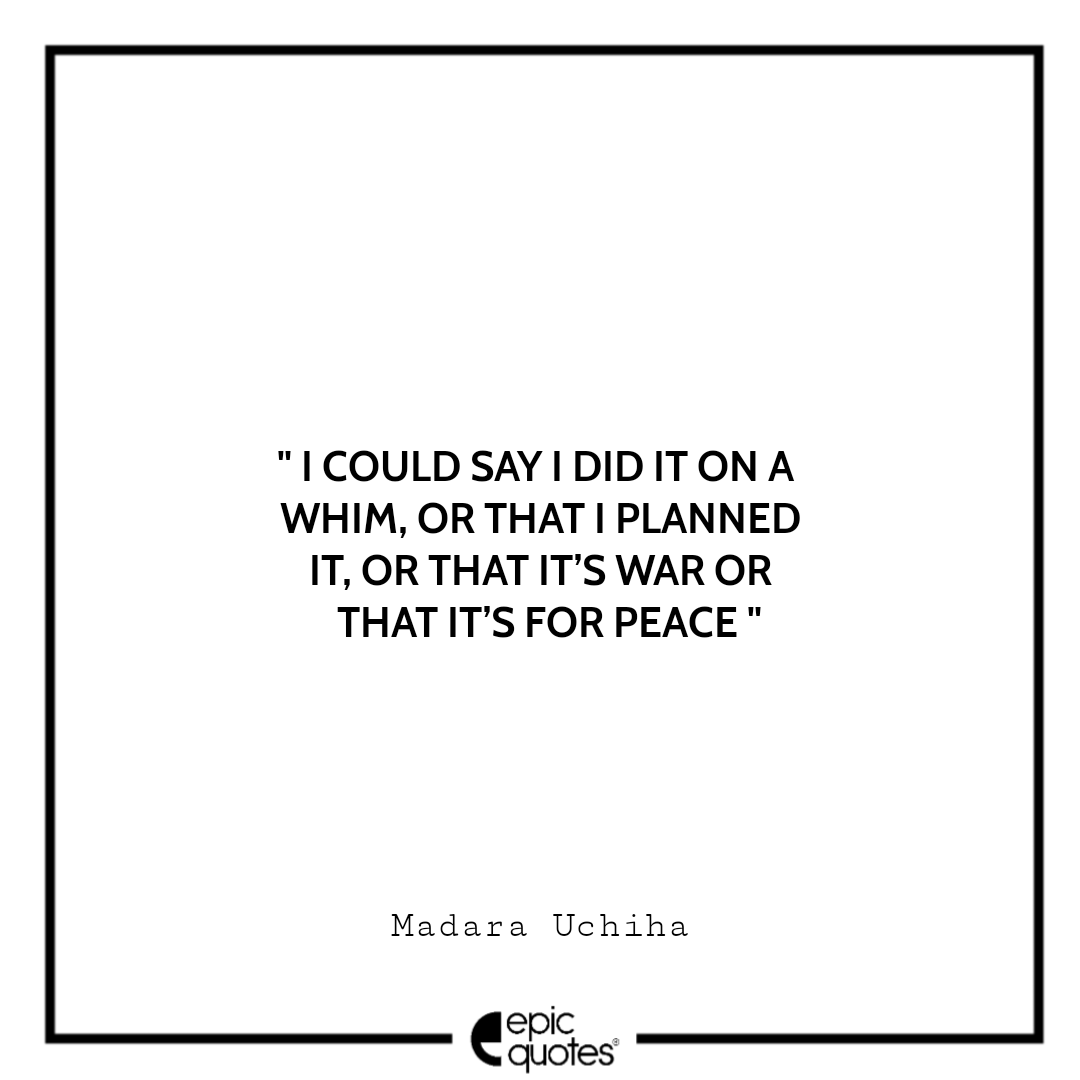 9 I could say I did it on a whim, or that I planned it, or that it’s war or that it’s for peace. -Madara Uchiha