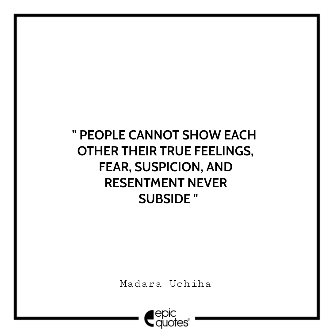 15. People cannot show each other their true feelings. Fear, suspicion, and resentment never subside. – Madara Uchiha