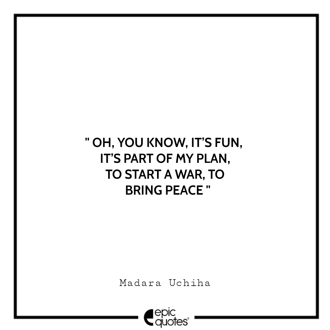 17 Oh, you know, it’s fun, it’s part of my plan, to start a war, to bring peace. –Madara Uchiha