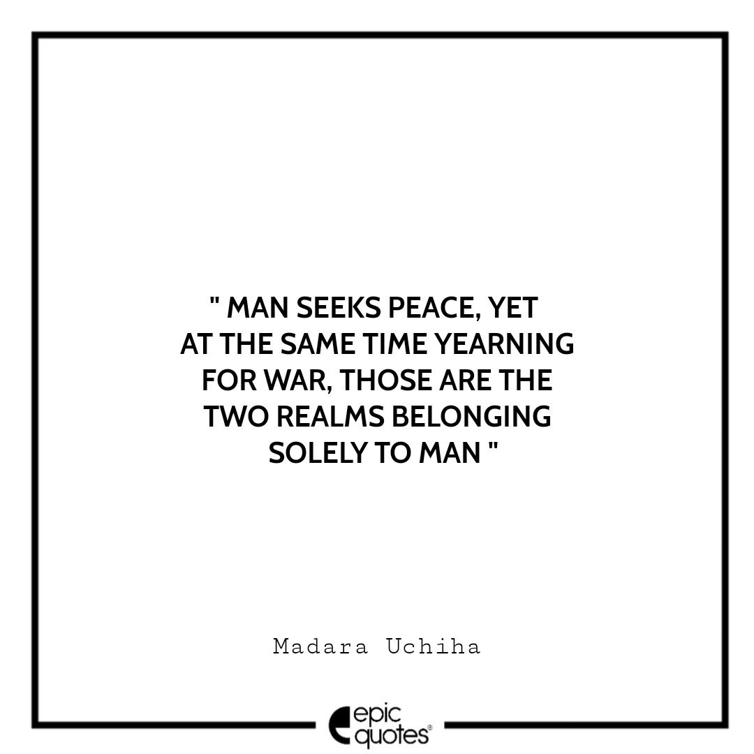 24. Man seeks peace, yet at the same time yearning for war, Those are the two realms belonging solely to man. -Madara Uchiha