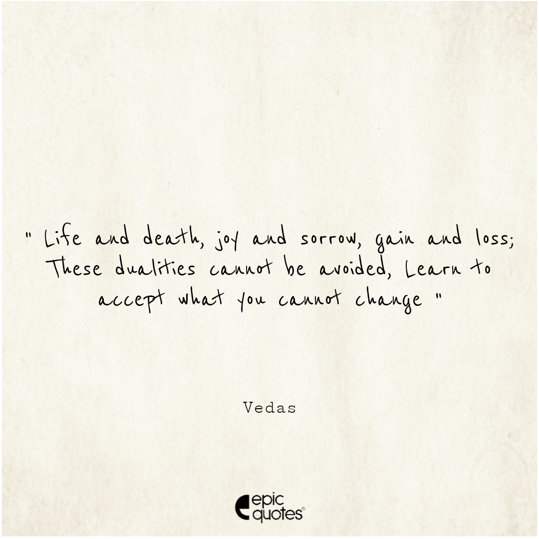 14. Life and death, joy and sorrow, gain and loss; These dualities cannot be avoided. Learn to accept what you cannot change