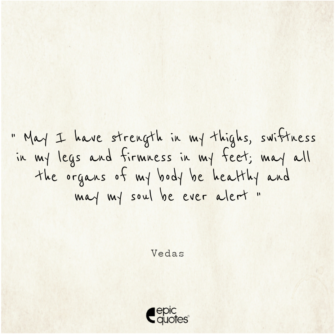7. May I have strength in my thighs, swiftness in my legs and firmness in my feet; may all the organs of my body be healthy and may my soul be ever alert