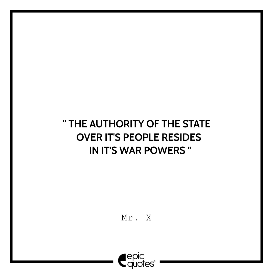 6 . The authority of the state over it’s people resides in it’s war powers. –Mr. X
