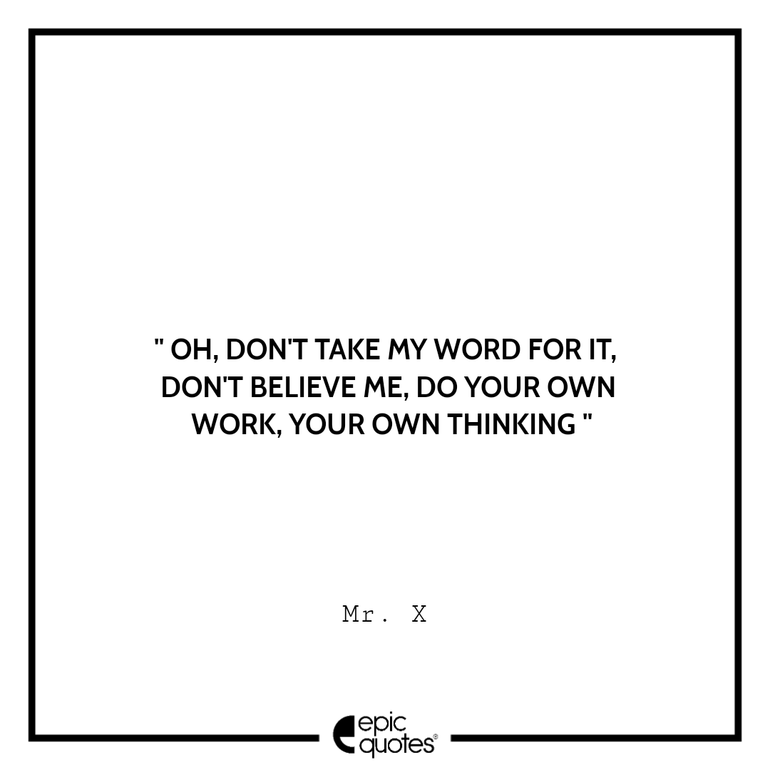 11 . Oh, don’t take my word for it, don’t believe me. Do your own work, your own thinking. –Mr. X