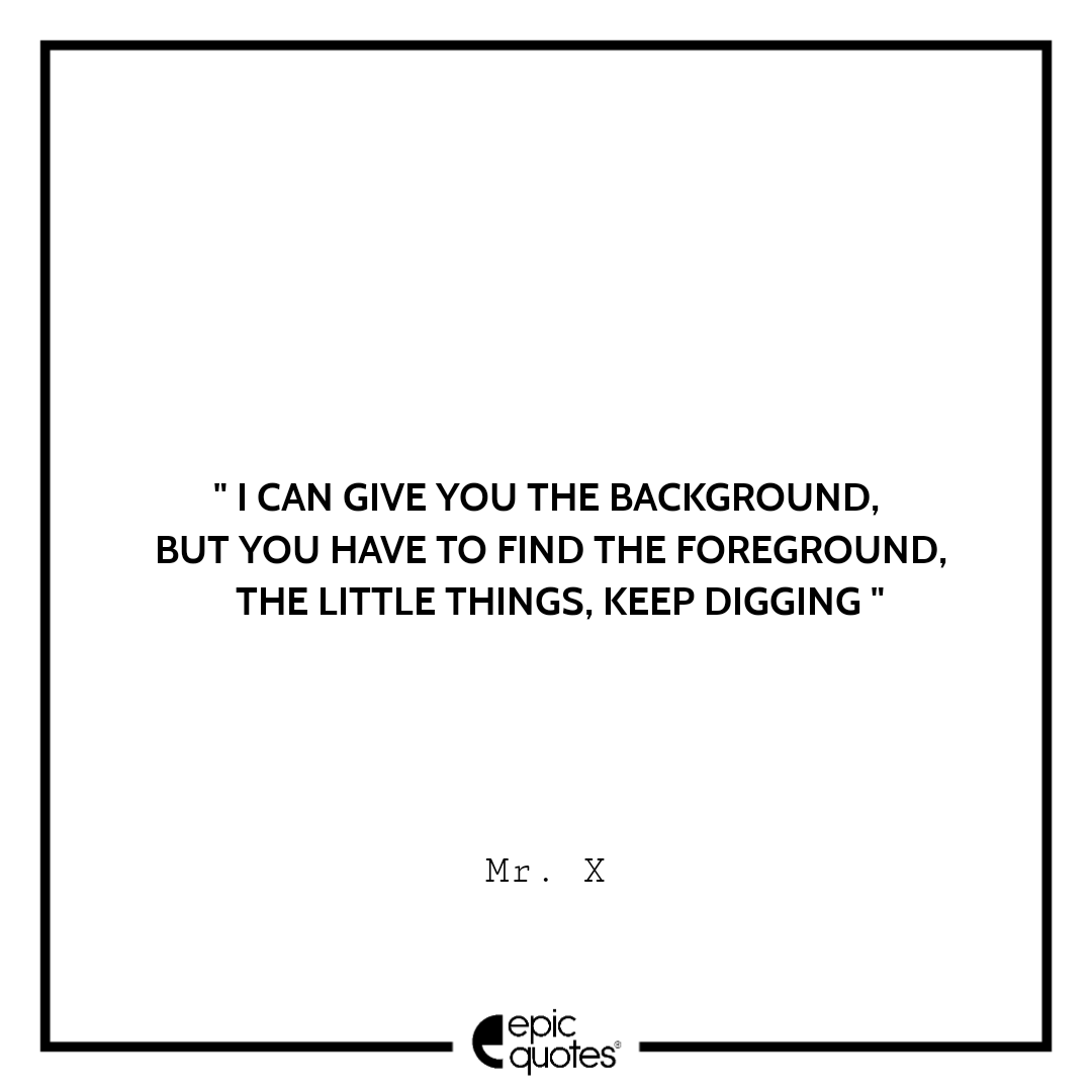 12. I can give you the background, but you have to find the foreground, the little things, keep digging. –Mr. X