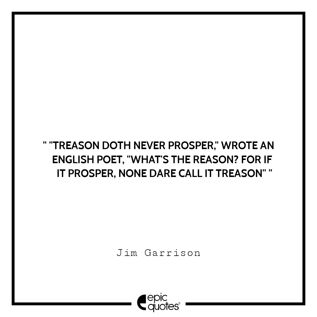 13 . “Treason doth never prosper,” wrote an English poet, “What’s the reason? For if it prosper, none dare call it treason.” –Jim Garrison